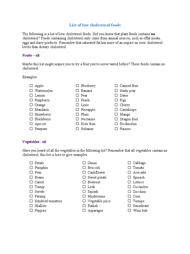 Low Cholesterol Food Chart Page 1 Line 17qq Com