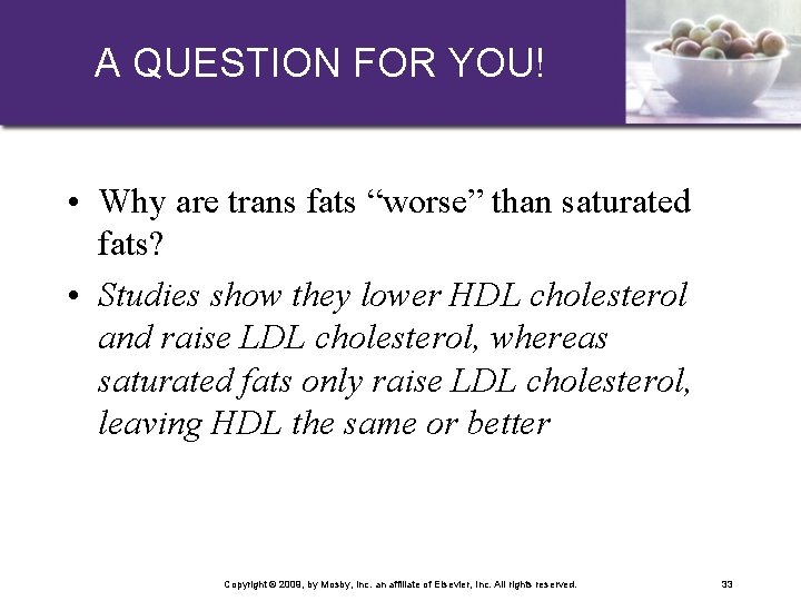 Which is worse trans fat or saturated fat. 3162020 Saturated and trans fats can raise cholesterol levels and increase disease risk. 1272021 The general consensus between dietitians nutritionists and other experts is that saturated fat is less healthful than unsaturated fat. This is the bad.
