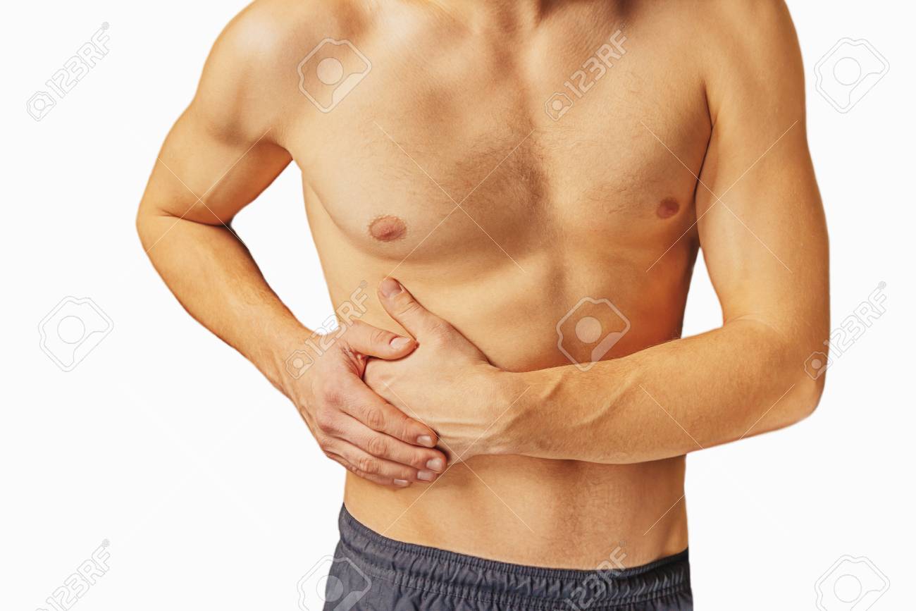 Acute Pain In A Right Side Of Male Abdomen Isolated On A White Stock Photo Picture And Royalty Free Image Image 77069043